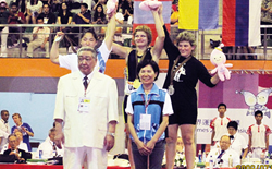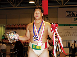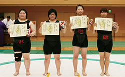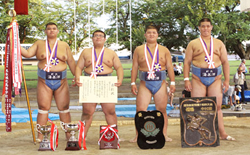 135kg以上級 左から優勝 明月院(日体大)、準優勝 森本(拓大)、3位 葛西(近大)、尾崎(東農大)